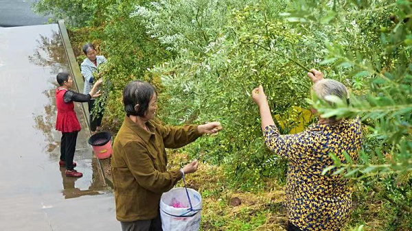 群山之間,秋雨婆娑,村民們正忙著采摘橄欖果,山間不時(shí)回蕩著歡聲笑語(yǔ)。
