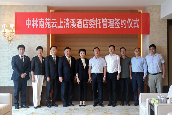 7月6日,中林生態所屬子公司寧波美林旅游開發有限公司(以下簡稱“寧波美林”)與寧波南苑集團股份有限公司(以下簡稱“首旅南苑”)簽署云上清溪酒店委托管理協議。中林生態總經理張浩,首旅南苑總經理鄭碧寅參加儀式并見證簽約。中林生態副總經理宋悅,首旅南苑副總經理兼總會計師戴暉、副總經理劉偉義參加活動。