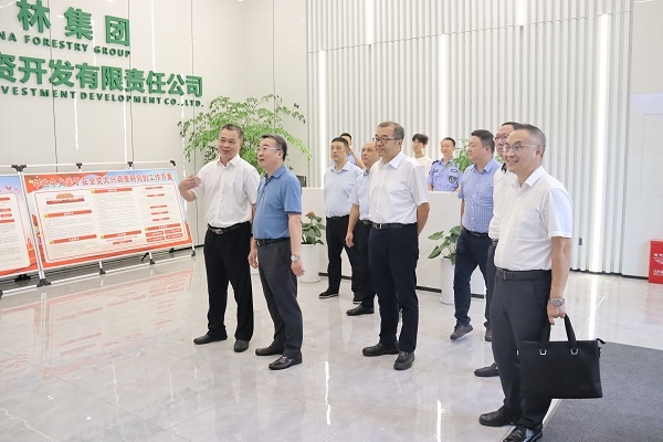 8月25日上午,重慶市政府副市長商奎到中林集團(tuán)重慶林投公司,調(diào)研指導(dǎo)重慶國儲(chǔ)林項(xiàng)目建設(shè)。他指出,重慶國儲(chǔ)林項(xiàng)目要深入踐行習(xí)近平生態(tài)文明思想,當(dāng)好“兩山論”的積極傳播者和模范踐行者,加快打造全國樣板,聚力推進(jìn)生態(tài)惠民,真正把綠水青山建設(shè)成為金山銀山。重慶市林業(yè)局局長曹春華、副局長王聲斌,重慶林投公司班子成員參加調(diào)研。