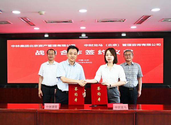 近日,中林集團北京資產(chǎn)管理有限公司(以下簡稱“中林資管”)與中財龍馬(北京)管理咨詢有限公司(以下簡稱“中財龍馬”)簽署戰(zhàn)略合作協(xié)議。中林資管董事長、總經(jīng)理劉偉,中財龍馬董事長萬剛出席并見證簽約。