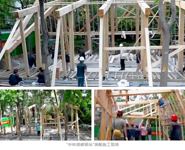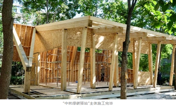 近日,由中林集團和北京林業大學共同研發的近零能耗混合木結構示范工程“中林綠碳驛站”已完成主體結構施工,即將在北京林業大學校園圖書館東側落戶,為校園的秋色增添一份“木”之暖意。