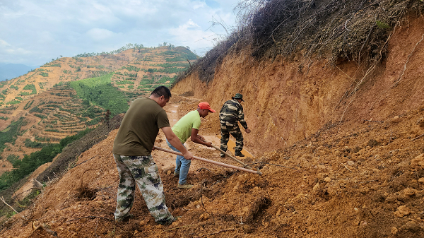 油茶栽種最好的時節是在陰天或雨后。6月底,久旱逢甘霖,一場及時雨的到來拉開了栽種油茶的攻堅號角。每天,選苗職工早上五點鐘就趕到苗場,他們蹲下身子,一株株檢查,選出好苗壯苗,顧不上休息,在八點前送到工地,同事們和工人早早就在基地等待,確保每天近萬棵油茶苗木高質量栽種到位。