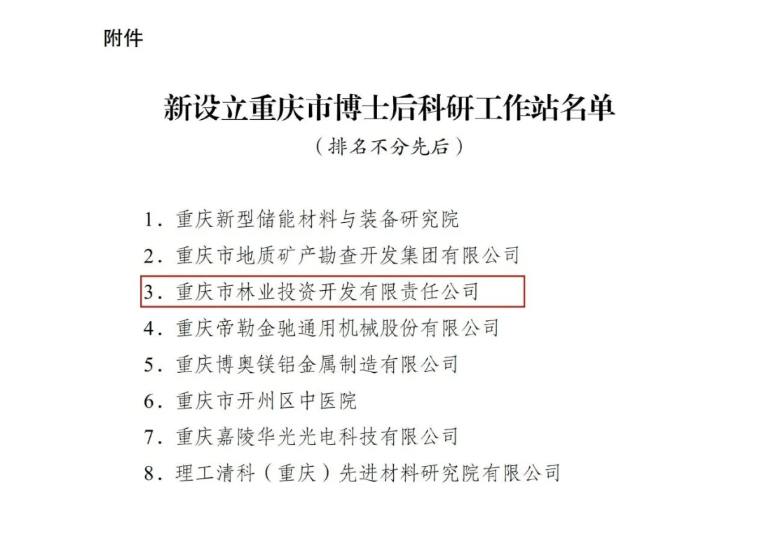 近日,重慶市人力資源和社會保障局下發通知,中林集團所屬重慶市林業投資開發有限責任公司(以下簡稱“重慶林投公司”)成功獲批設立博士后科研工作站。這標志著重慶林投公司在國儲林建設與科技創新方面邁上了新的臺階,在科研平臺建設上取得又一重大突破。