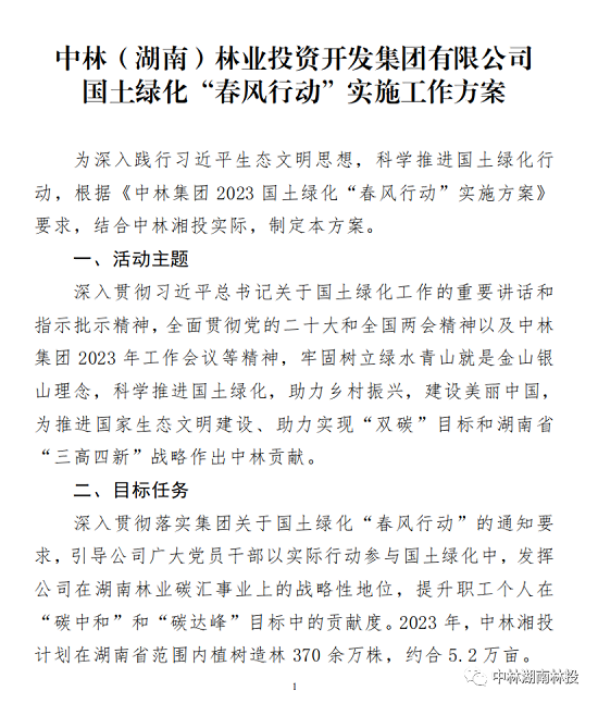 中林湘投將以本次活動為起點,持續推進國土綠化“春風行動”,計劃2023年在湖南省范圍內植樹造林370余萬株,約合5.2萬畝,以實際行動增林擴綠,為綠水青山美麗中國建設貢獻力量。