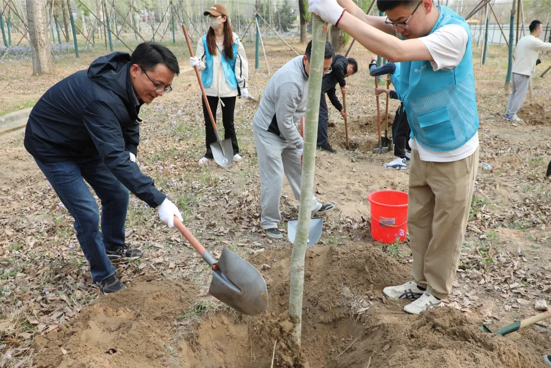 活動現場,大家分工協作、相互配合,揮鍬鏟土、扶苗填土、提桶澆水……一道道工序緊密銜接,植樹現場呈現出一派熱火朝天的景象。經過一番忙碌,一棵棵新植苗木“亭亭而立”,生機盎然。北京活動現場還通過綠色健步走活動來宣傳低碳環保理念,傳遞文明綠色的生活方式。