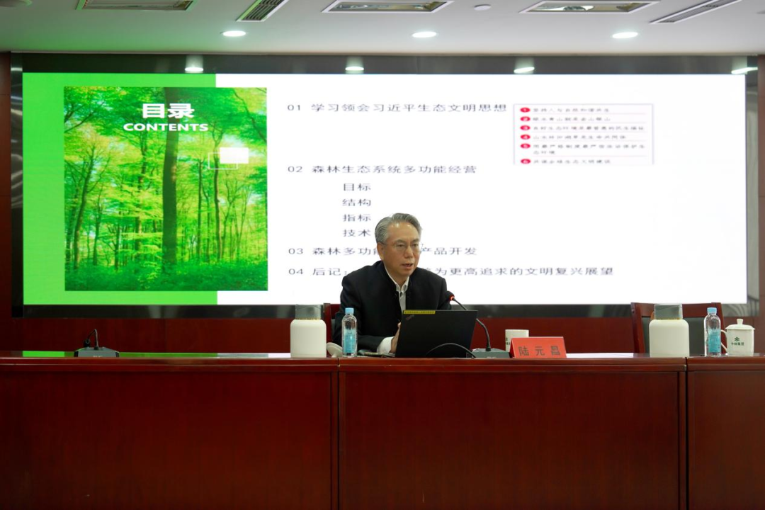 陸元昌從習(xí)近平生態(tài)文明思想的基本內(nèi)涵切入,圍繞森林生態(tài)系統(tǒng)多功能協(xié)力經(jīng)營、系統(tǒng)目標(biāo)、系統(tǒng)結(jié)構(gòu)、指標(biāo)體系、技術(shù)要點(diǎn)等方面,生動(dòng)詮釋了森林生態(tài)系統(tǒng)多功能協(xié)力經(jīng)營理論的科學(xué)內(nèi)涵,并就森林多功能價(jià)值產(chǎn)品體系建設(shè)提出了科學(xué)性的建議,為廣大干部提供了系統(tǒng)的森林經(jīng)營管理理論指導(dǎo),深刻闡明了現(xiàn)代林業(yè)產(chǎn)業(yè)的發(fā)展方向。授課后,陸元昌還圍繞森林康養(yǎng)、林業(yè)法規(guī)、鄉(xiāng)村振興進(jìn)行了答疑交流。